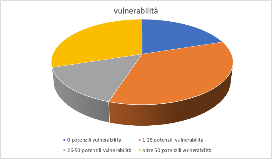 in media le aziende del settore sono affette da oltre 80 diverse potenziali vulnerabilità, con picchi massimi di 900 vulnerabilità riscontrate.